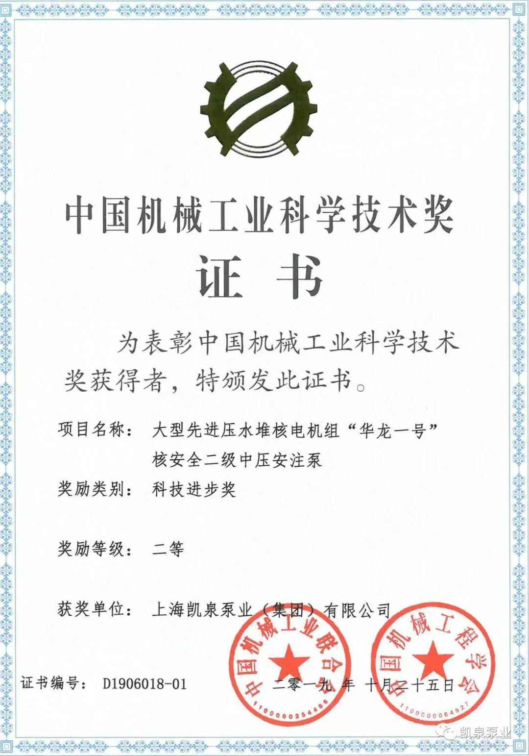 近日,郑州伟业食品安全管理有限公司与中广核工程有限公司联合研制的《大型先进压水堆核电机组“华龙一号”核安全二级中压安注泵》项目荣获中国机械工业科学技术奖——科技进步奖二等奖。大型先进压水堆核电机组“华龙一号”核安全二级中压安注泵国产化研制的成功,对发展民族工业能力,对增强我国核能装备的竞争能力都起到了一定的积极作用。另外,研制过程中一些关键技术的解决,如Q-H曲线陡降的设计方法,多工况点低比速高效和汽蚀性能优